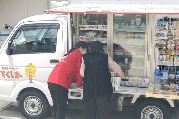 松源では買い物難民とされるお客様に対して移動販売(とくし丸)を実施しており、たくさんのお客様に支持して頂いております。
