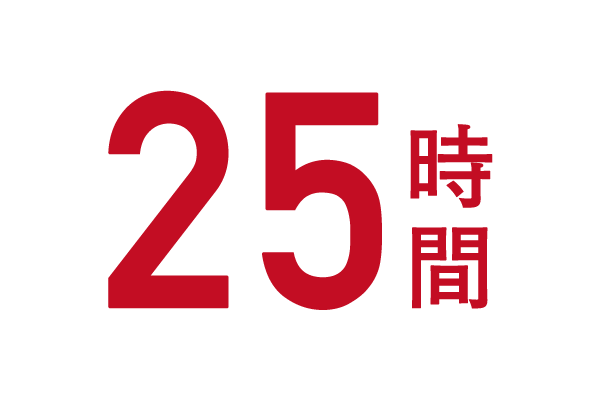 25時間(管理監督者除く)※固定残業時間を引いていない時間 約1日1時間残業